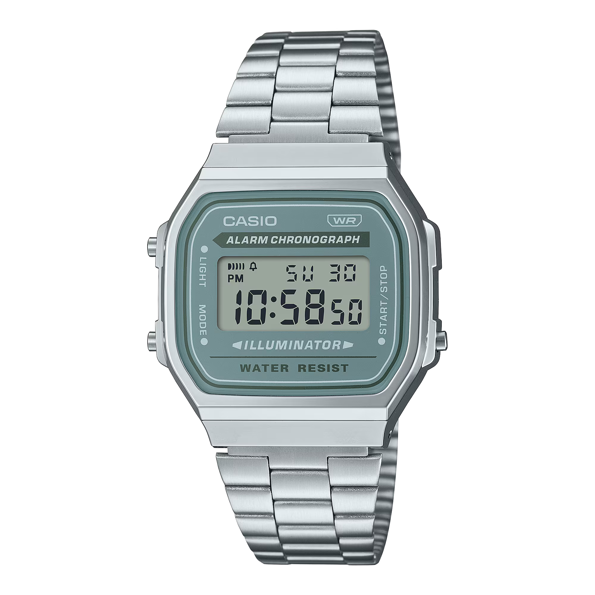 Subdued face colors in a range of tranquil, grey-tinged hues add a feel of urban-retro flair to the classic design combination of a square case paired with a metal band. A digital watch for lovers of fashion who like to express their own style while staying on top of the latest trends.